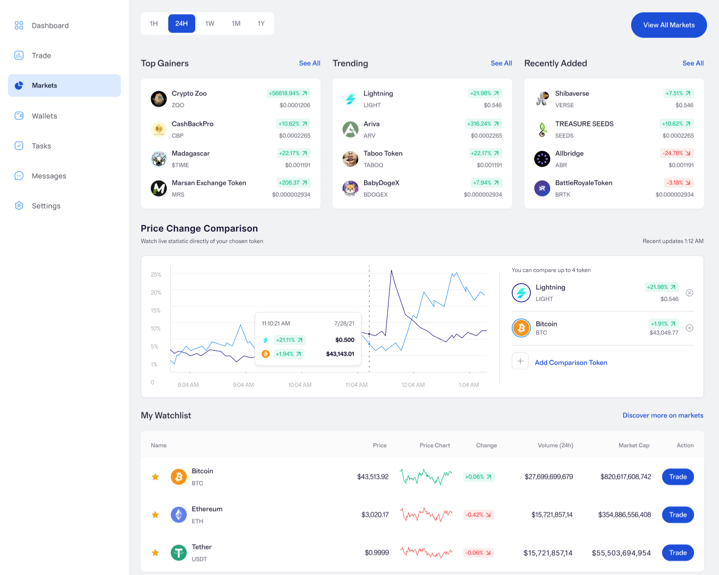 Miej na oku najlepszych zwycięzców, porównuj trendy cenowe i monitoruj swoje portfolio – wszystko w przejrzystym, szybkim interfejsie zaprojektowanym dla przejrzystości i wydajności.